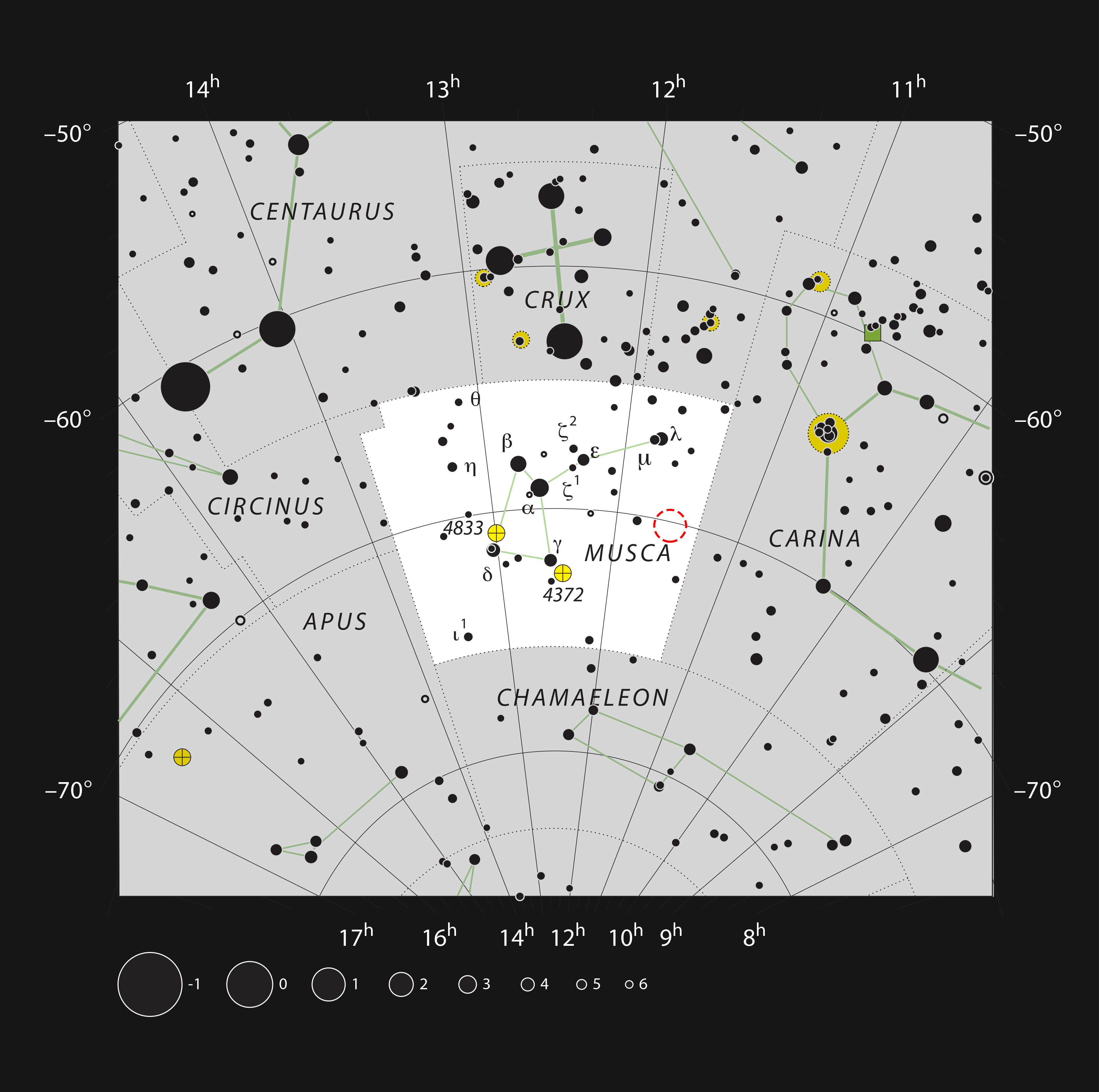 en la constelación austral de Musca (La Mosca). Fue creada a partir de