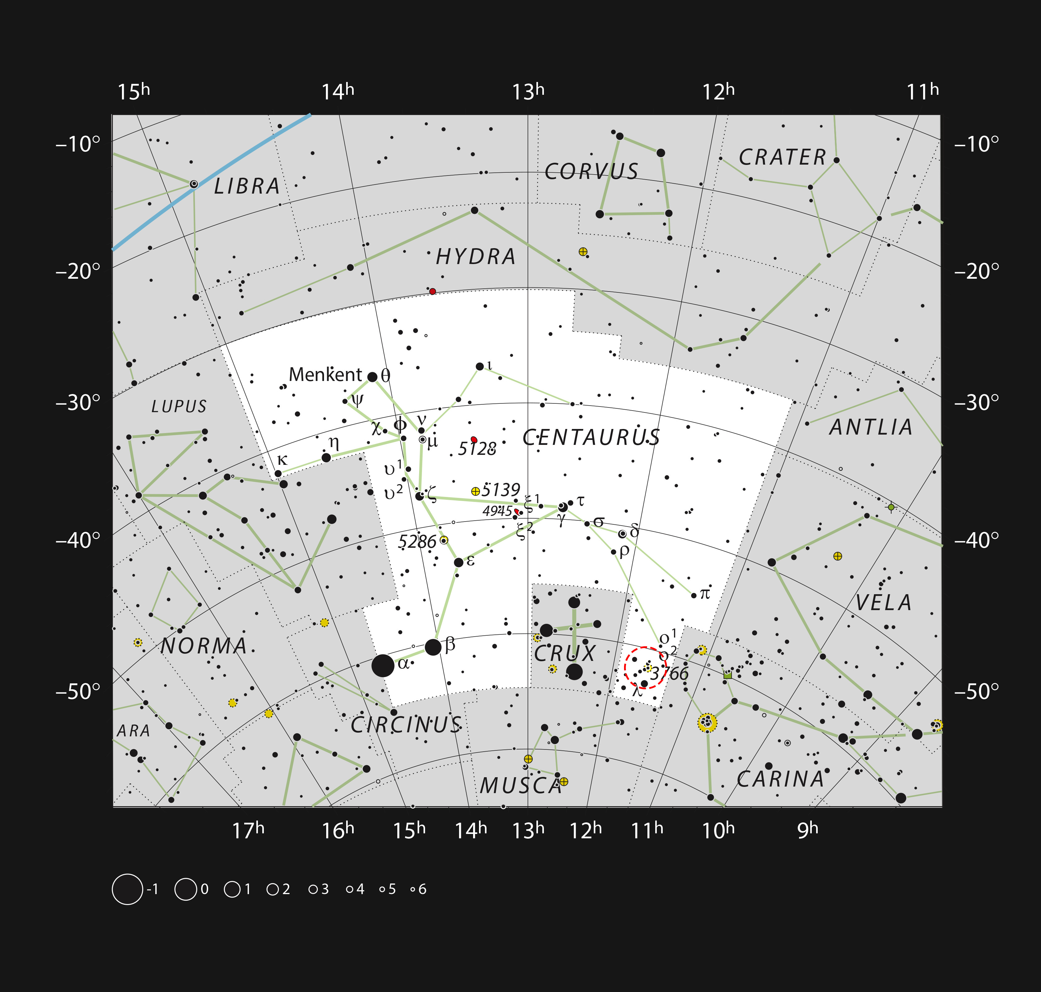 Este mapa muestra la gran constelación austral de Centaurus (El