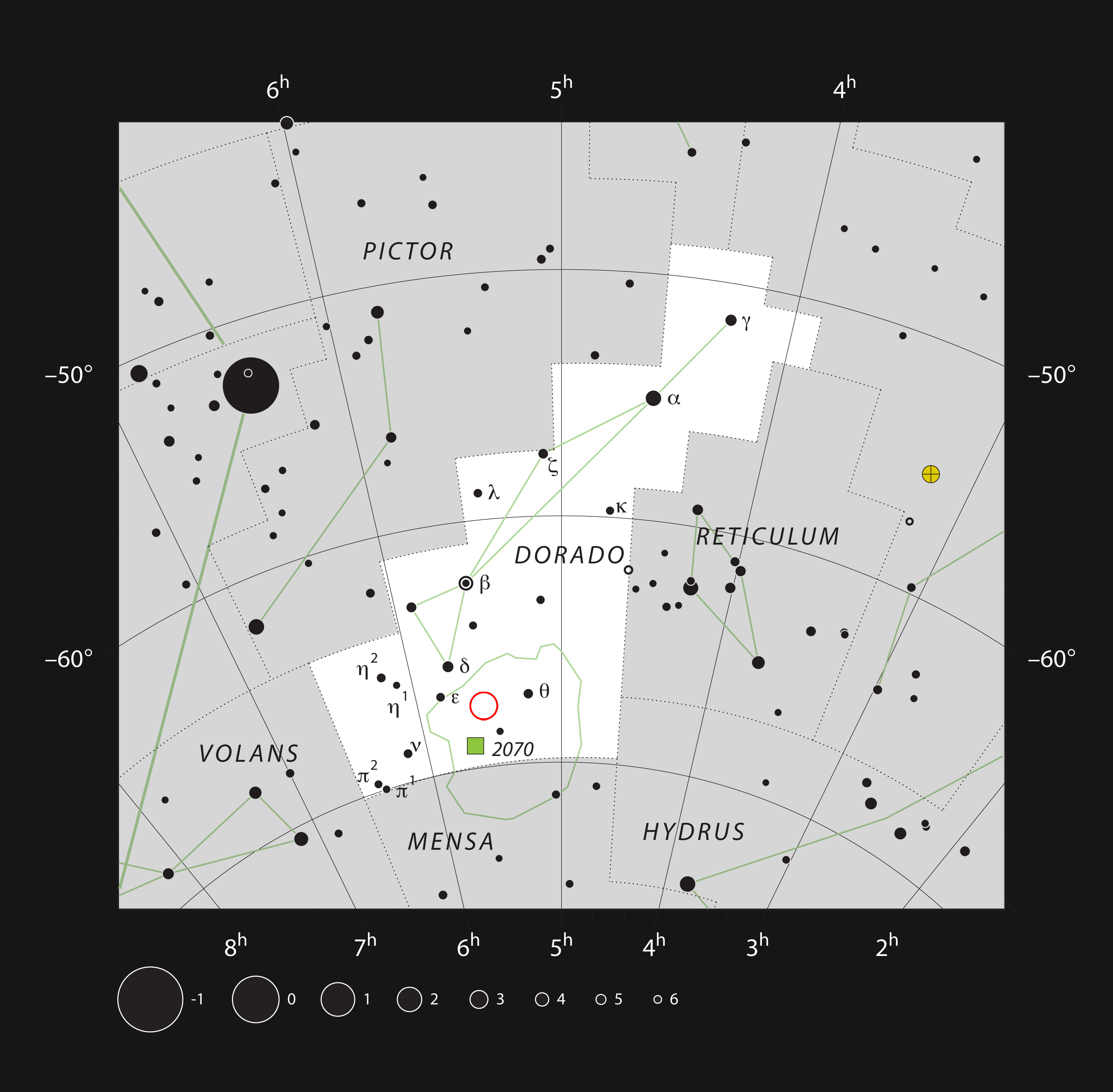 En este mapa podemos contemplar la constelación austral de Doradus (El Pez